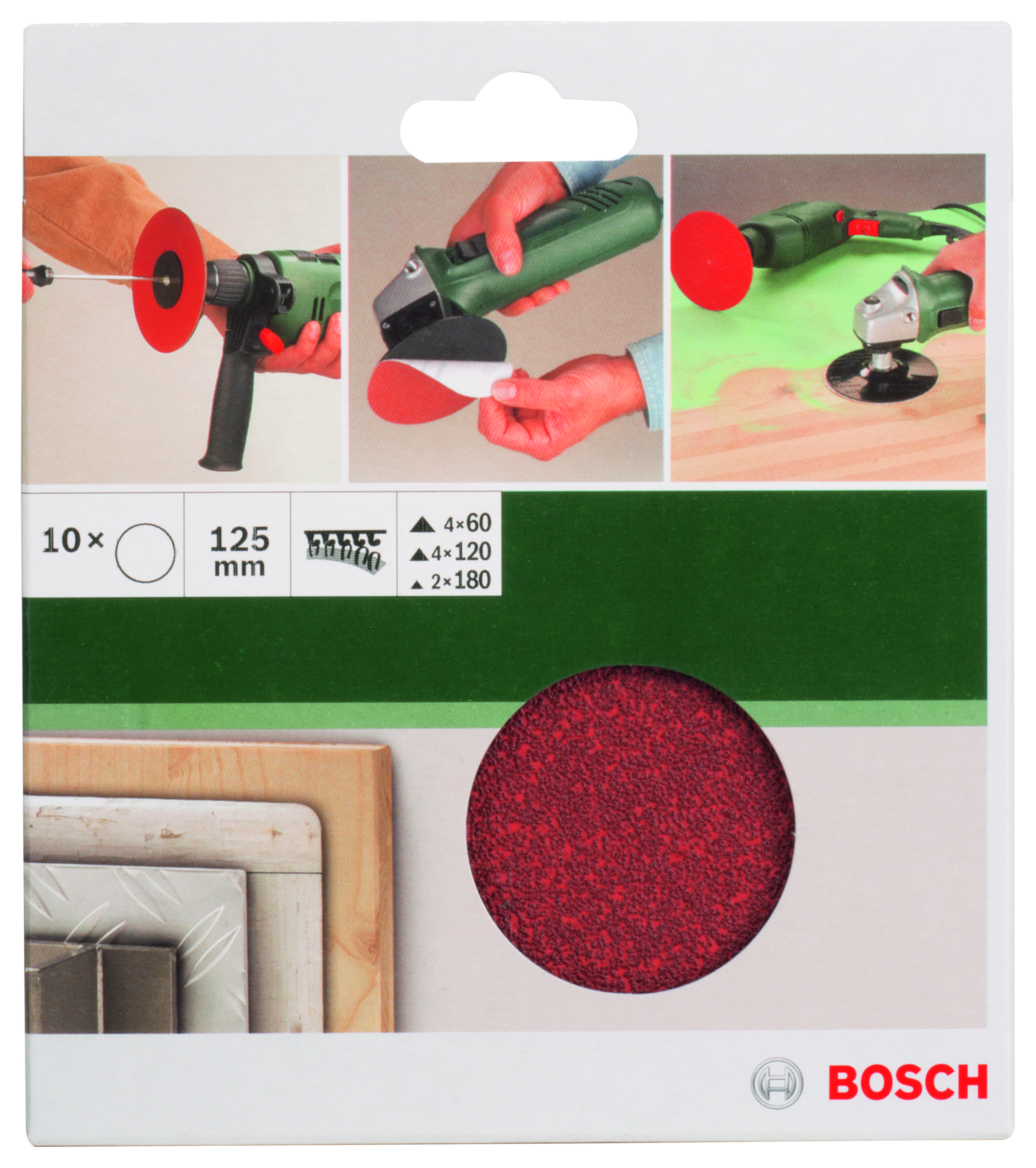 10-częściowy zestaw papierów ściernych do szlifierek kątowych i wiertarki D = 125 mm, K = 60 – 180, 10 szt.