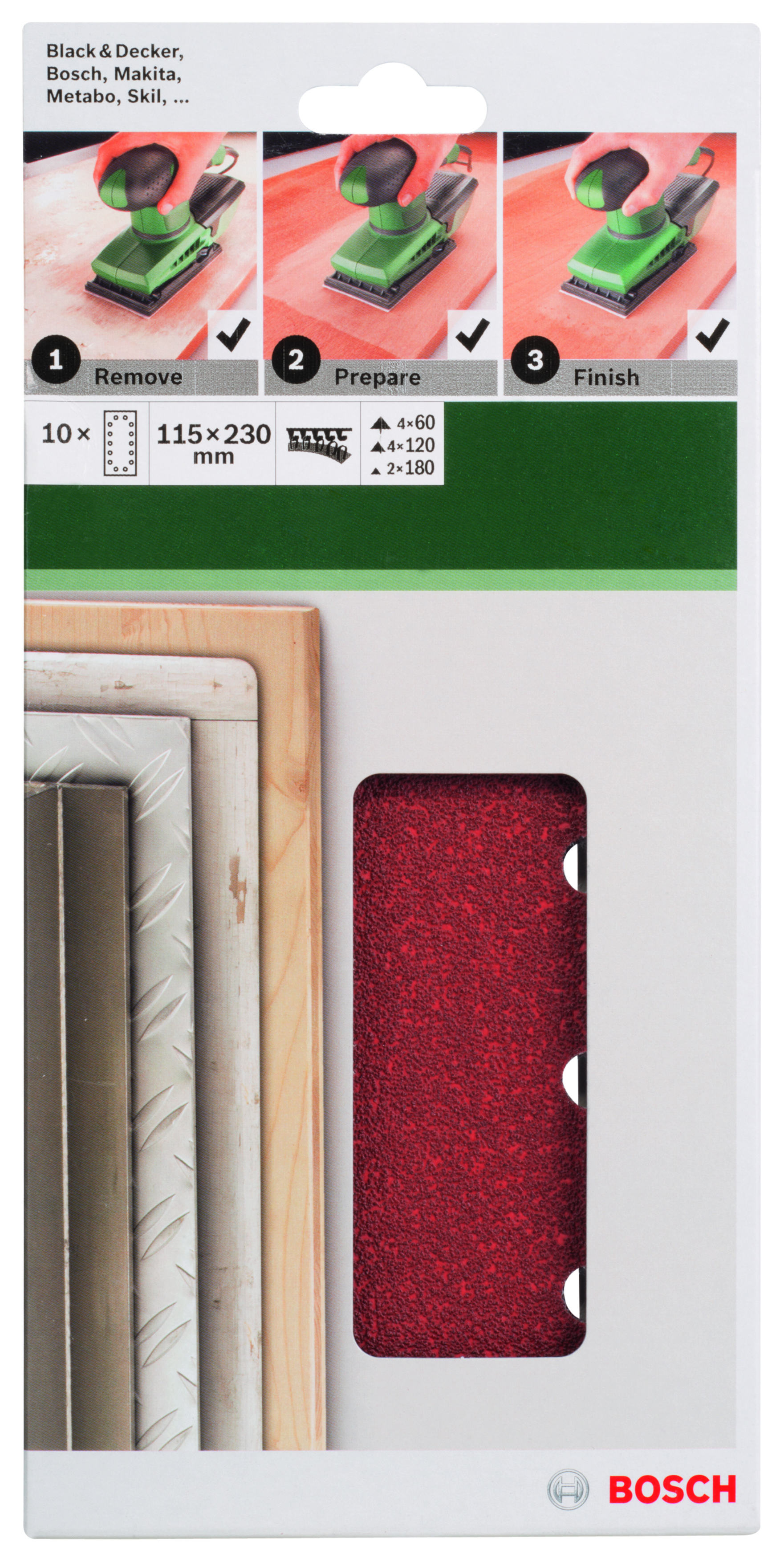 10-częściowy zestaw papierów ściernych do szlifierek oscylacyjnych K = 60, 120, 180