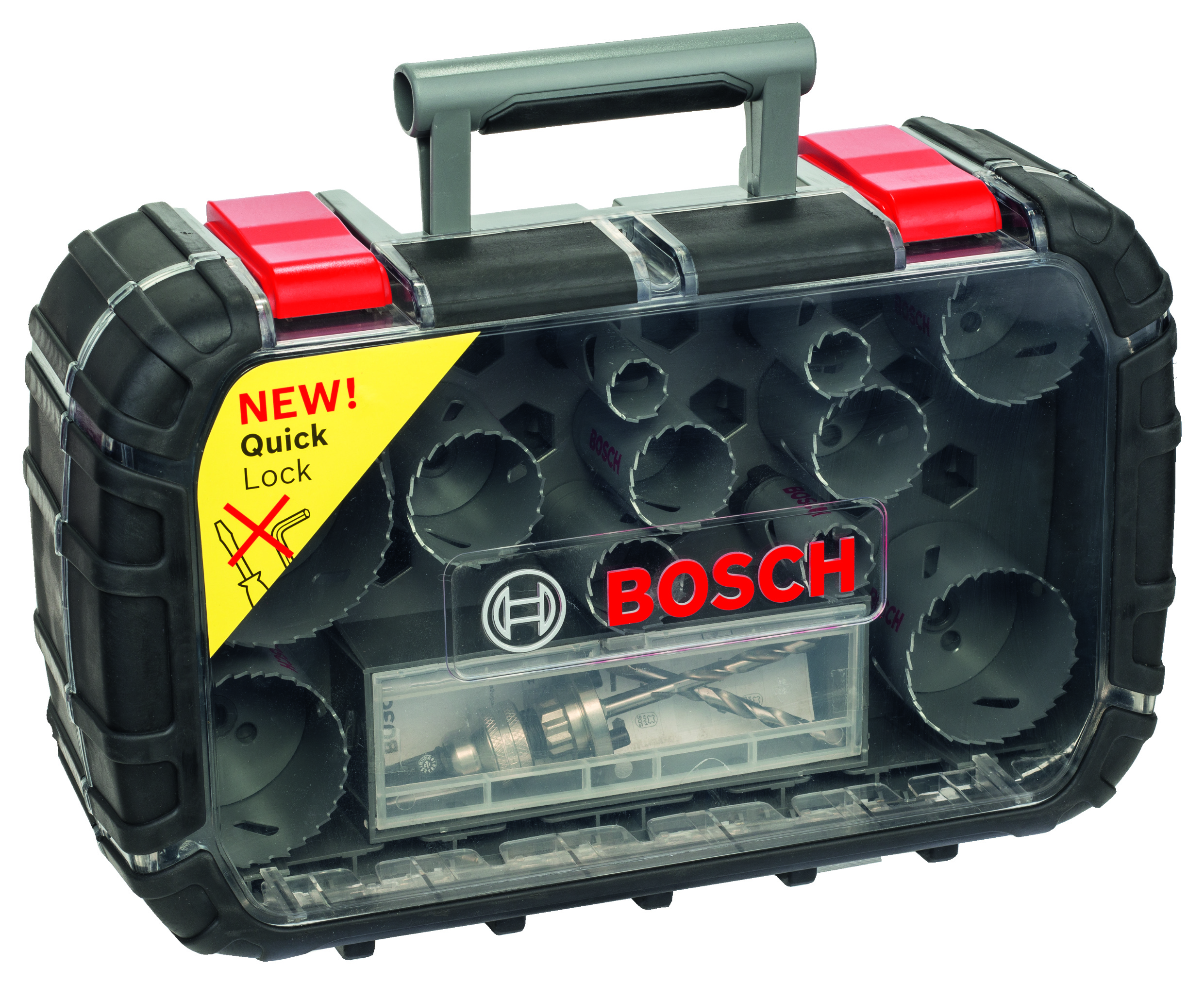 11 pił otwornic, 1 adapter Q-Lock, 3 dodatkowe adaptery, 2 wiertła centrujące HSS