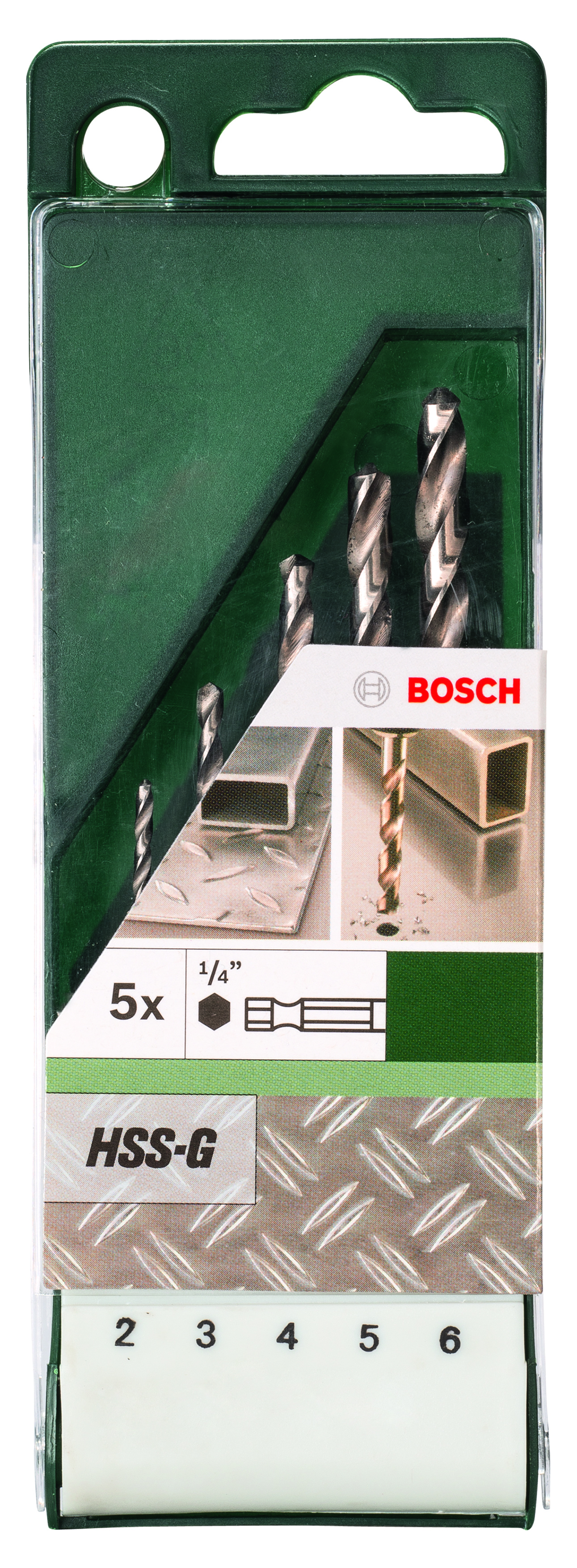 5-częściowy zestaw Wierteł do metalu HSS-G z chwytem sześciokątnym 2,0, 3,0, 4,0, 5,0, 6,0 mm