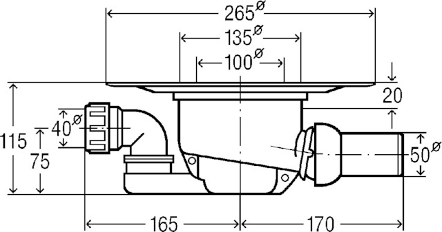 Advantix-odpływ łazienkowy nie występuje: nasadka, nr wzoru 4921.65 DN: 50 odpływ poziomy