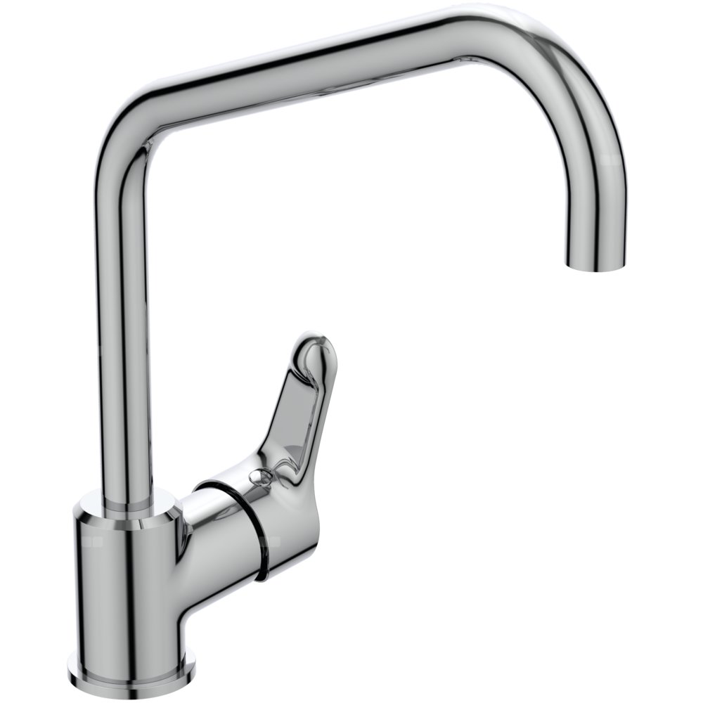 Bateria umywalkowa stojąca BlueStart. Głowica ceramiczna, 35 mm z ogranicznikiem temperatury. Metalowy uchwyt z nadrukowanymi czerwonymi i niebieskimi oznaczeniami. Technologia Cold Start - przepływ wody zimnej wody. Aerator (perlator) z ogranicznikiem przepływu wody do 5 l/min. System montażu Easy-Fix. Wężyki przyłączeniowe G3/8”.