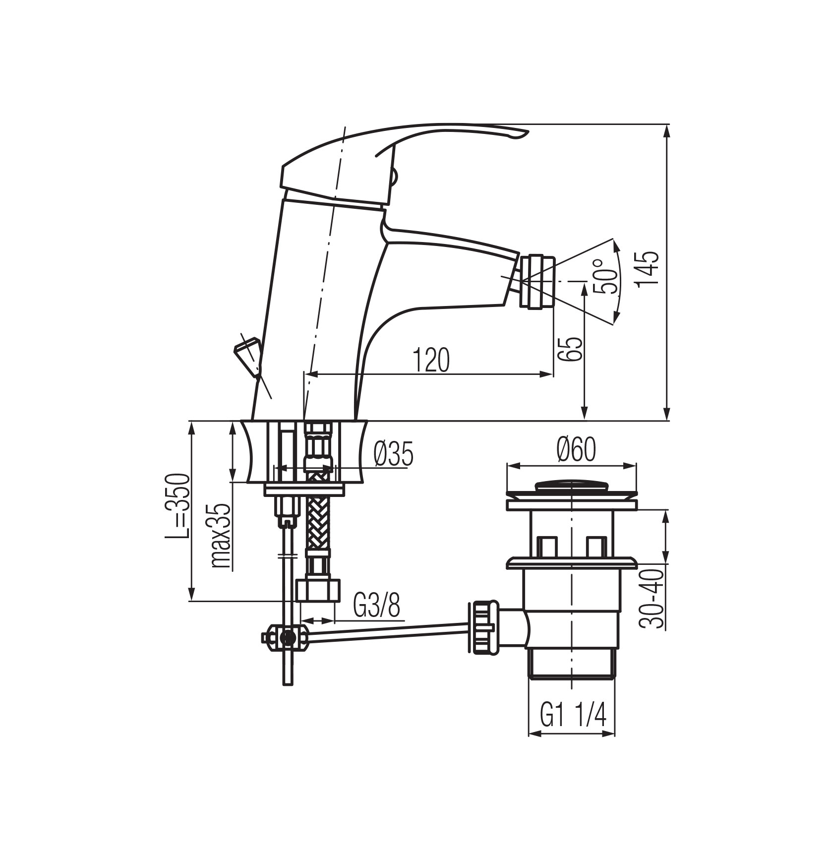 ANGELO Bateria bidetowa ze spustem