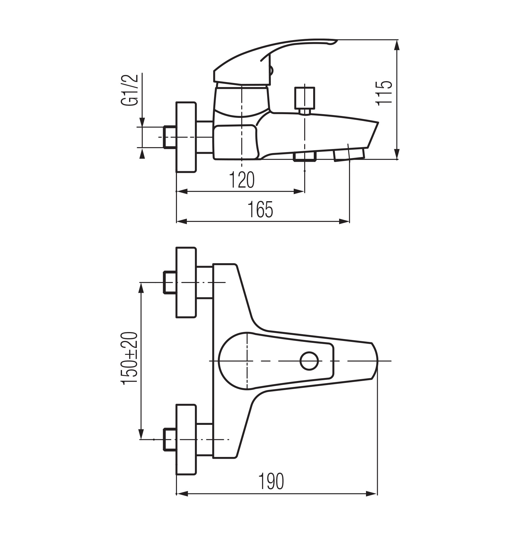ANGELO Bateria wannowa ścienna (bez akcesoriów)