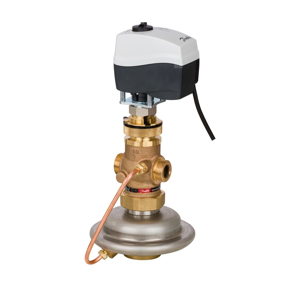 Regulator przepływu ze zintegrowanym zaworem regulacyjnym AVQM, PN 25, DN 15, natężenie przepływu [m3/h]: 0.07 - 1.60, gwint zewnętrzny, G 3/4 A, wersja montażowa: zasilanie/powrót