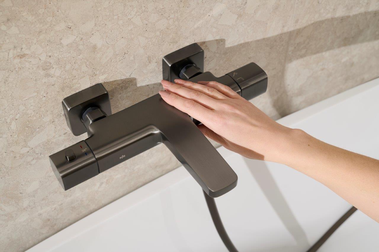 Bateria malaga, termostatyczna, wannowa, ścienna, pvd gun metal grey