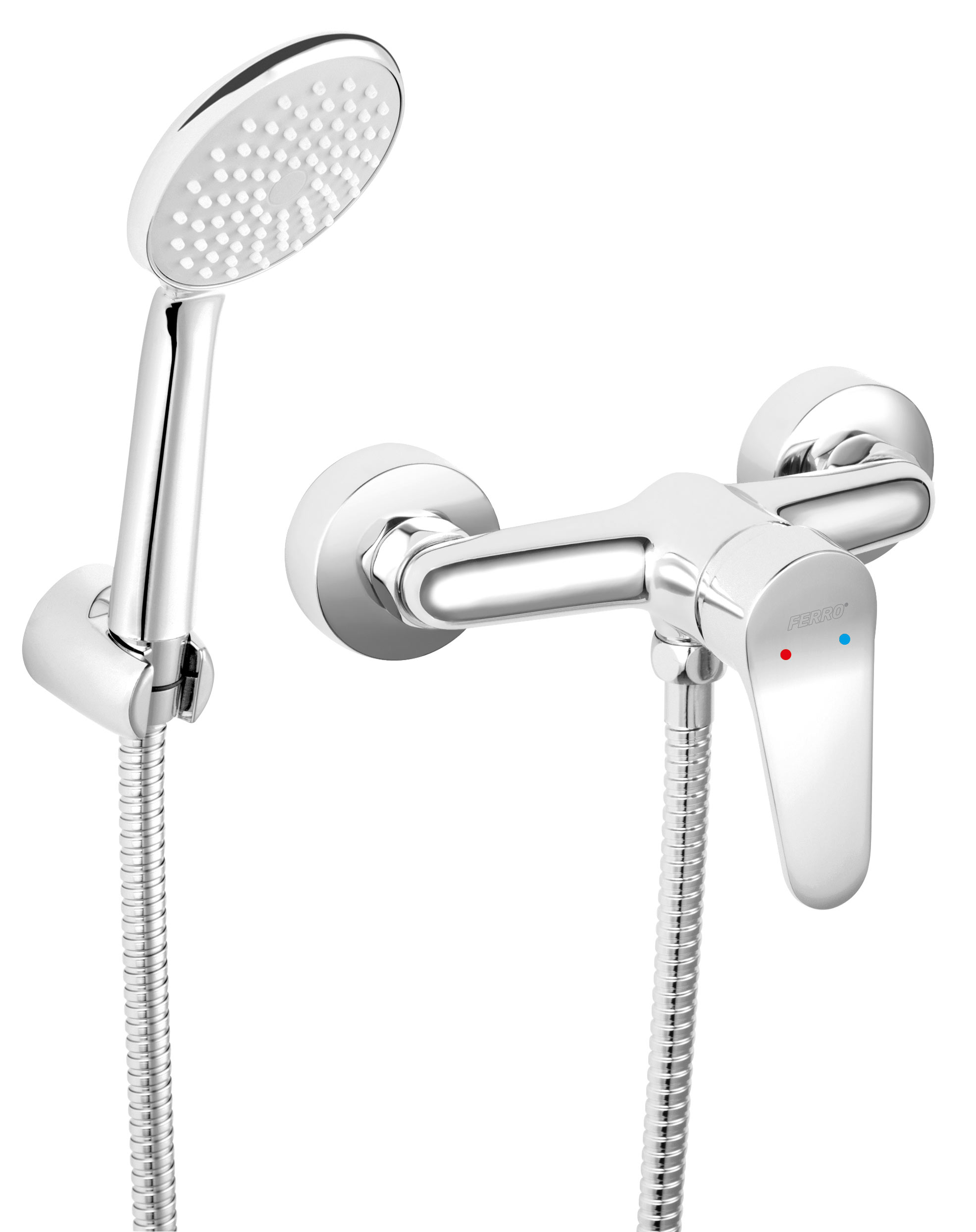 Bateria natryskowa ścienna FERRO ISSO, kolor chrom, z zestawem natryskowym