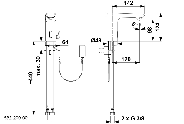 Bateria umywalkowa stojąca KFA Armatura SALTO, chrom, z regulacją temperatury, montaż blat / otwór na baterię