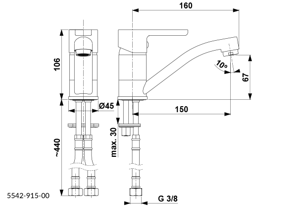Bateria umywalkowa stojąca KFA Armatura SODALIT, chrom, montaż blat / otwór na baterię