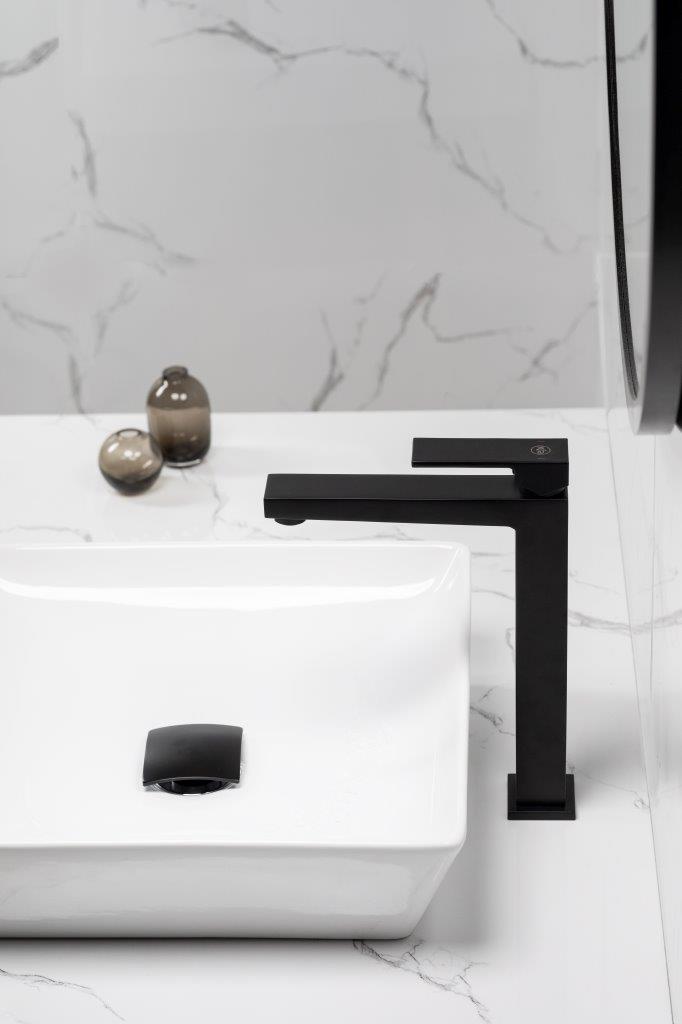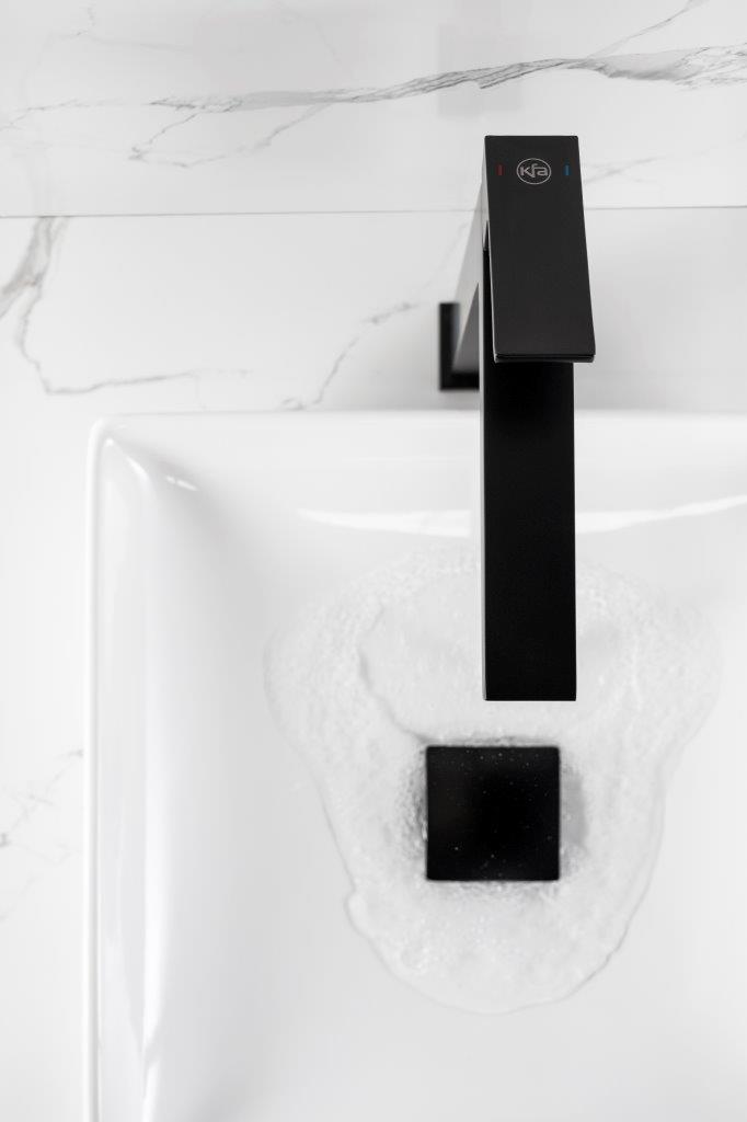 Bateria umywalkowa stojąca nablatowa KFA Armatura LOGON click clack, czarny, montaż blat / otwór na baterię