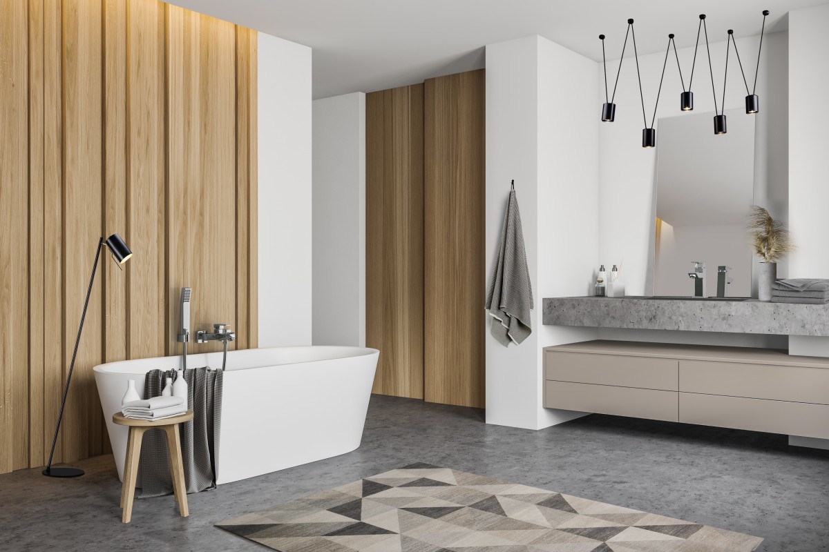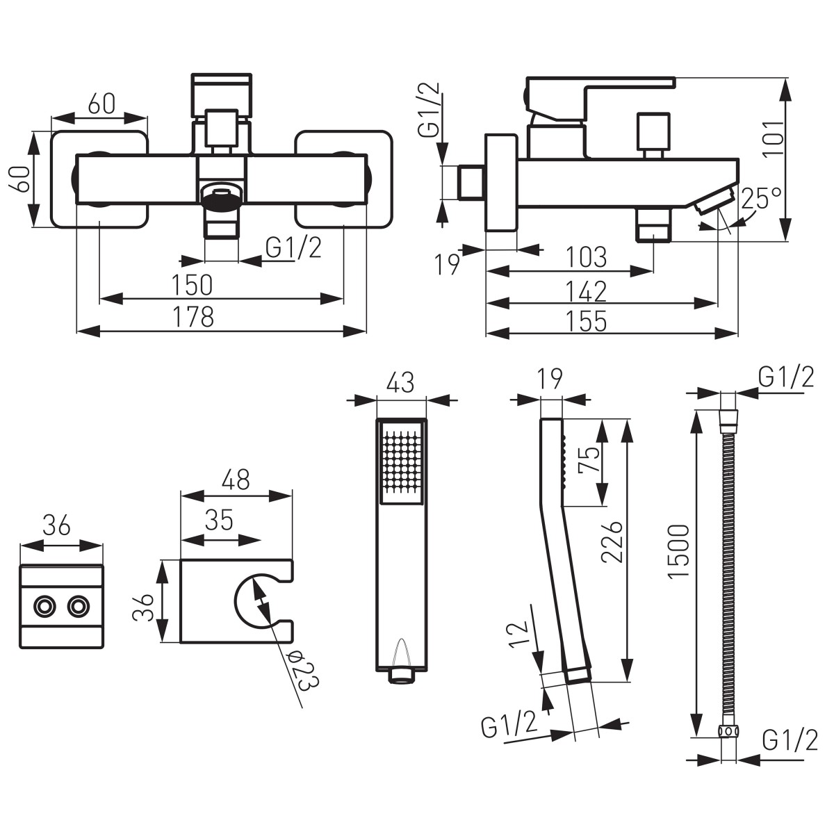 Charakterystyczna, kwadratowa bryła baterii sprawia, że jej dizajn doskonalone pasuje do nowoczesnego wnętrza. W komplecie znajdziemy prostokątną, modną 1-funkcyjną rączkę natryskową, trwały wąż prysznicowy w oplocie z metalu oraz uchwyt.
