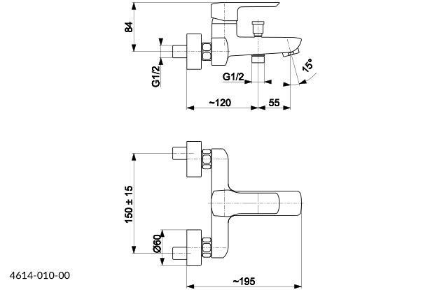 Bateria wannowa ścienna KFA Armatura AQUAMARYN, kolor chrom