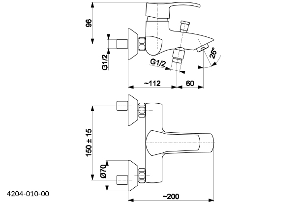 Bateria wannowa ścienna KFA Armatura KWARC, kolor chrom