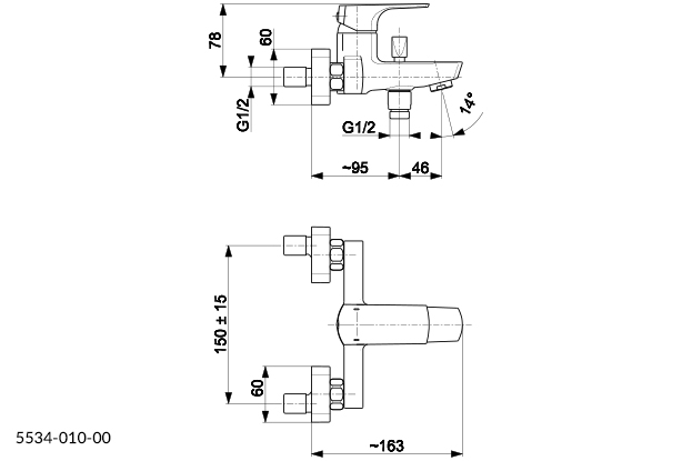 - Rozstaw przyłączy [mm]: 150 ± 15 mm