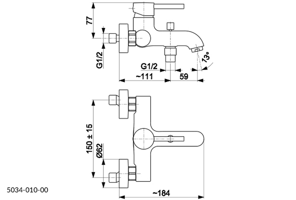Bateria wannowa ścienna KFA Armatura MOZA, kolor czarny