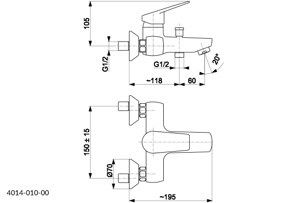 Bateria wannowa ścienna KFA Armatura TOPAZ, kolor chrom