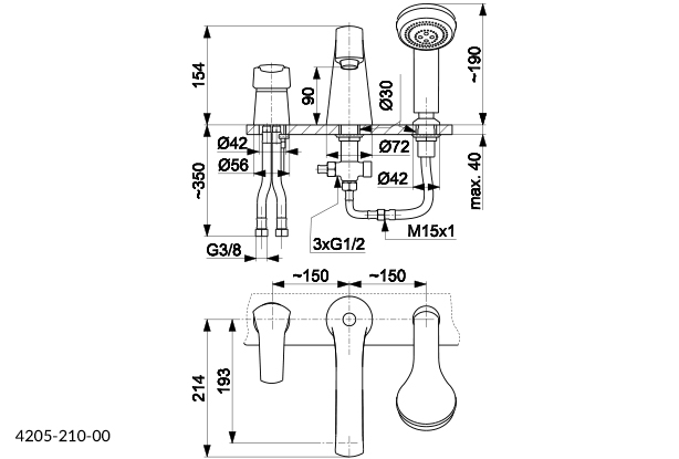 Bateria wannowa stojąca KFA Armatura KWARC, kolor chrom