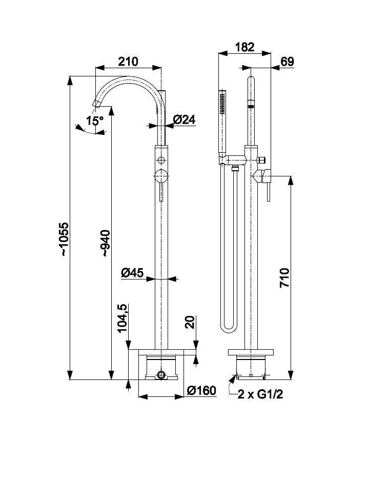 - Przepływ wody [l/min]: rączka natrysku 17/ wylot 24