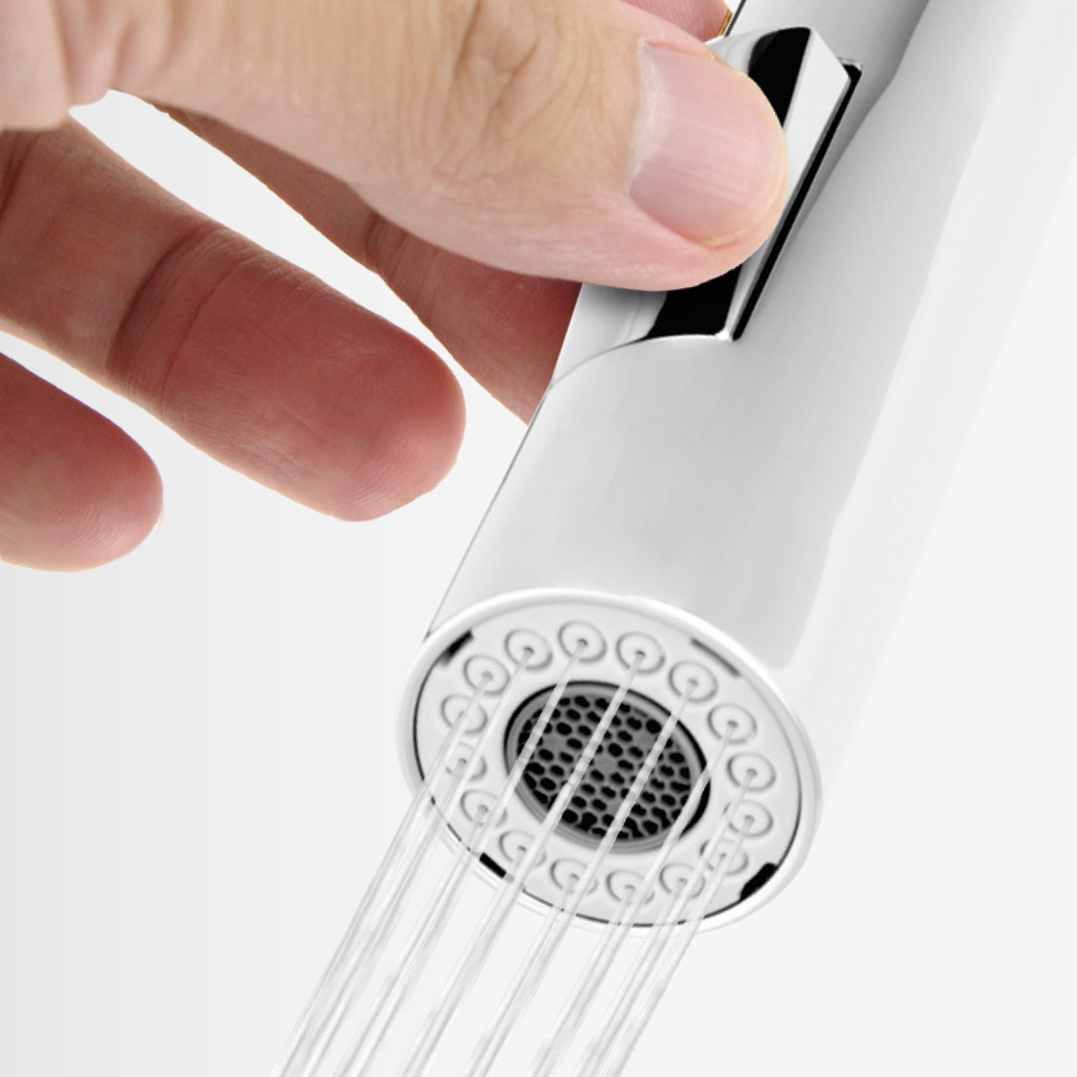 Bateria zlewozmywakowa o ciekawym, smukłym cylindrycznym kształcie. Posiada ruchomą, elastyczną wylewkę, której kształt możemy dowolnie formować. Dzięki temu rozwiązaniu bateria staję się bardziej praktyczna oraz łatwiejsza w użytkowaniu. Dwu-funkcyjna wylewka baterii daje nam również możliwość wyboru strumienia wody.