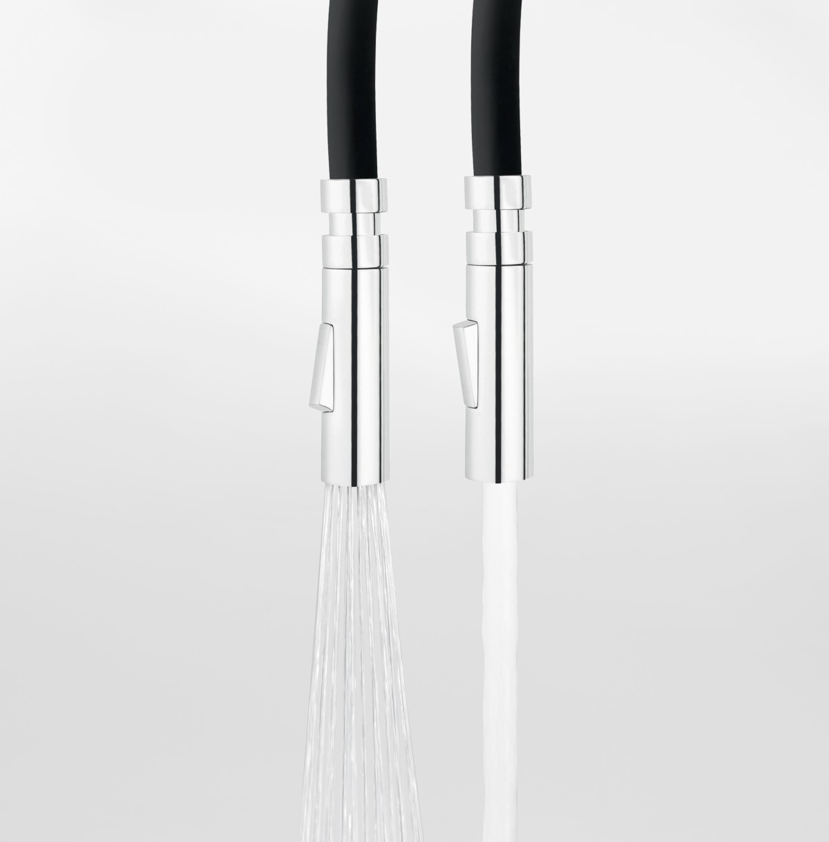 Bateria zlewozmywakowa z o delikatnym a zarazem nowoczesnym, cylindrycznym kształcie. Wyposażona jest w praktyczną, elastyczną wylewkę z możliwością regulacji strumienia.