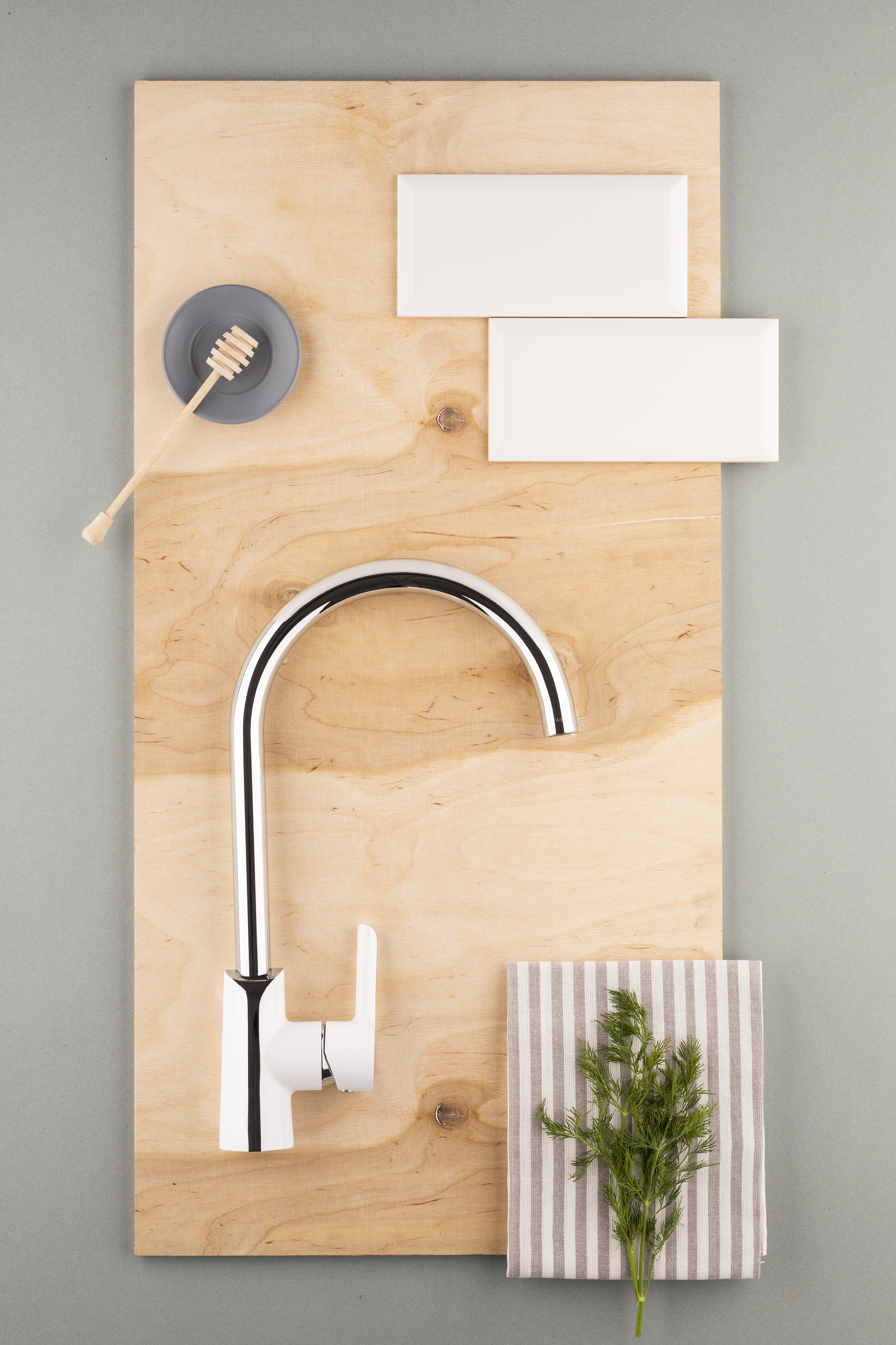 Bateria zlewozmywakowa stojąca KFA Armatura ANGELIT, kolor chrom, biała, mosiądz