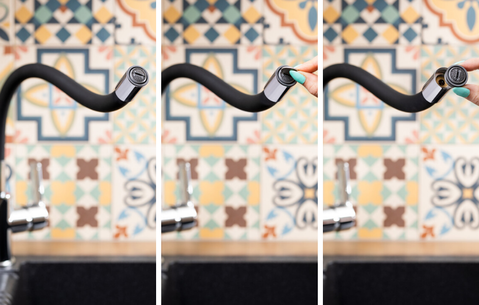 Bateria rumba kuchenna stojąca z elastyczną wylewką chrom