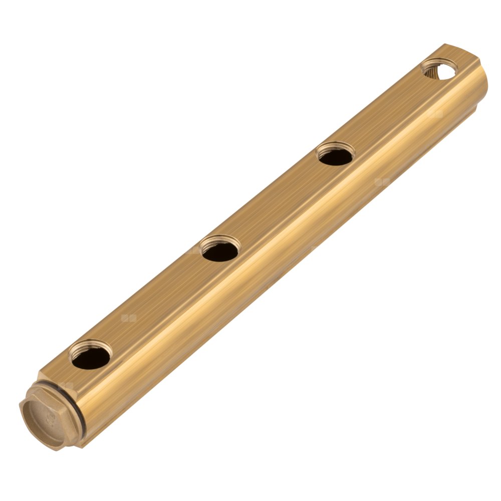 Belka rozdzielacza mosiężna, rozstaw podłączeń 100 mm, 3-drogowa