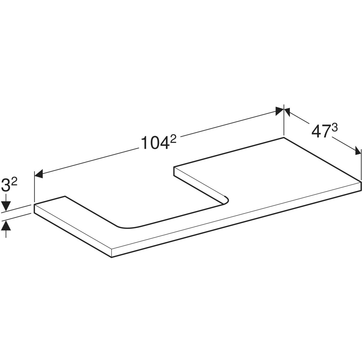 Blat pod umywalkę Geberit ONE z wycięciem, do prostokątnej umywalki nablatowej: B=104.2cm, Biały, Przekrój=Lewa strona, Lakierowany na wysoki połysk