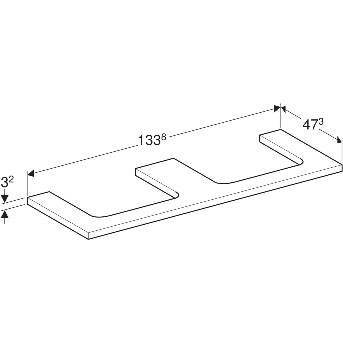 Blat pod umywalkę Geberit ONE z wycięciem, do prostokątnej umywalki nablatowej: B=133.8cm, Biały, Przekrój=Lewa i prawa strona, Lakierowany matowy
