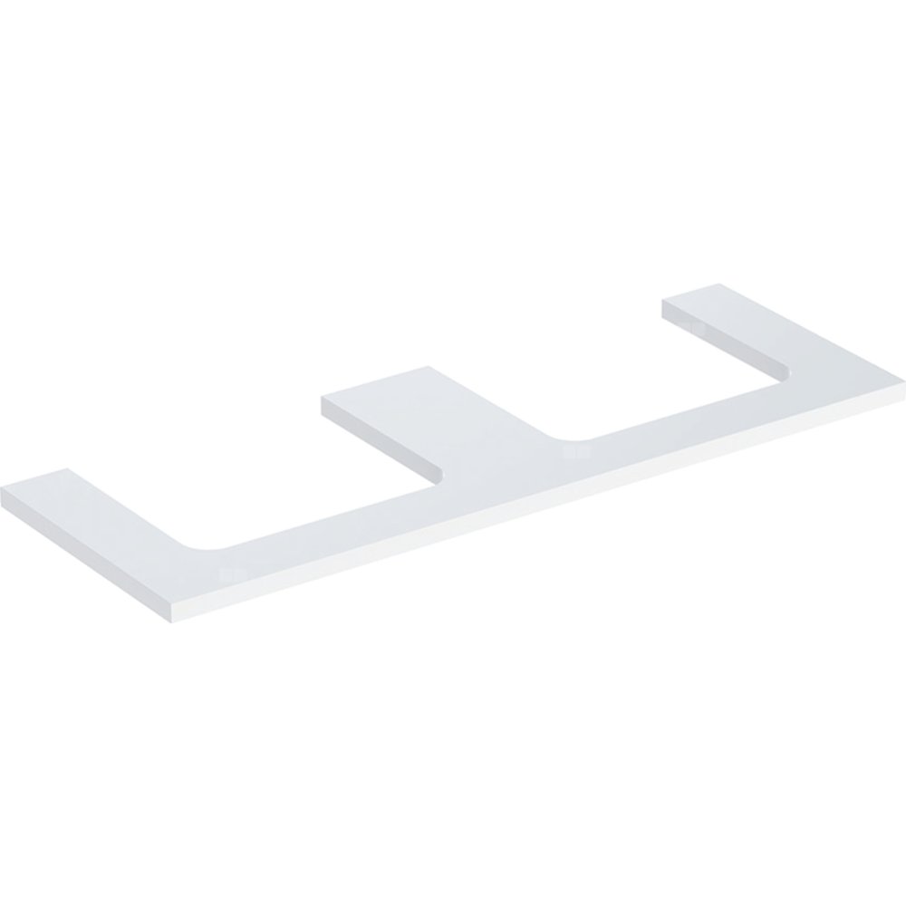 Blat pod umywalkę Geberit ONE z wycięciem, do prostokątnej umywalki nablatowej: B=133.8cm, Biały, Przekrój=Lewa i prawa strona, Lakierowany na wysoki połysk