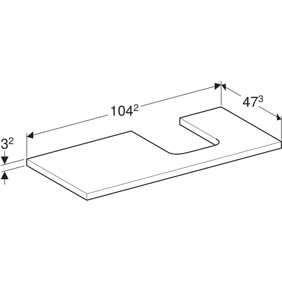 Blat pod umywalkę Geberit ONE z wycięciem, do umywalki nablatowej w kształcie misy: B=104.2cm, Biały, Lakierowany matowy, Przekrój=Prawa strona