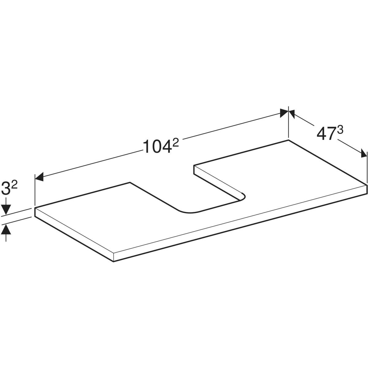 Blat pod umywalkę Geberit ONE z wycięciem, do umywalki nablatowej w kształcie misy: B=104.2cm, Biały, Lakierowany na wysoki połysk, Przekrój=Na środku