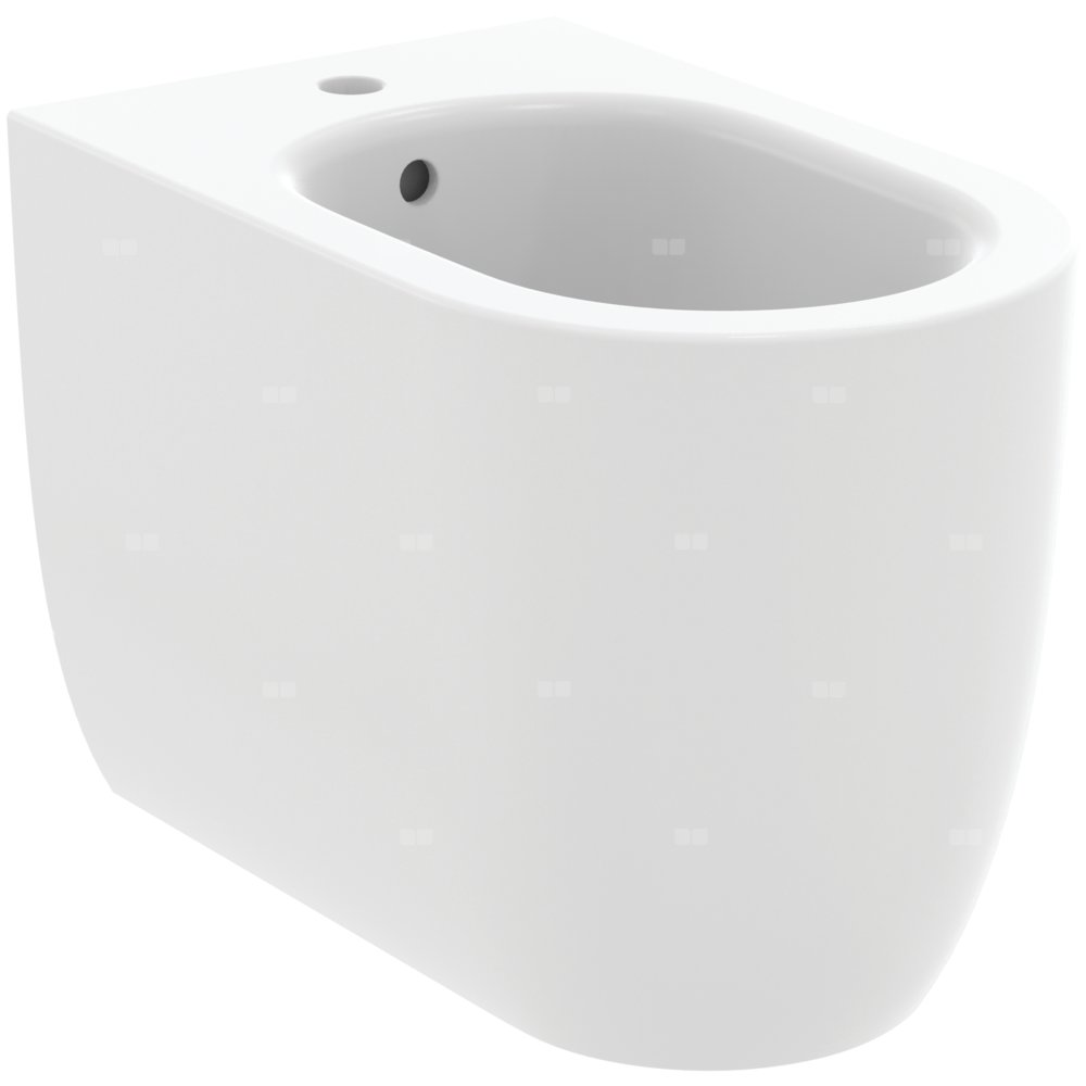 Bidet Blend Curve przylegający do ściany z 1 otworem na baterię, przelewem oraz ukrytymi mocowaniami (zestaw montażowy w komplecie). Zalecane wyposażenie: syfon do bidetu, zawór kątowy.