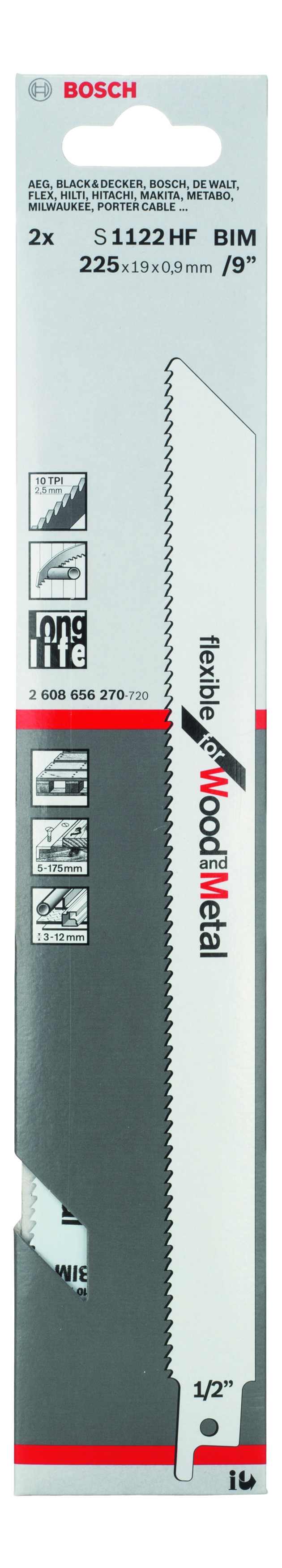 S 1122 HF BIM, zęby rozwarte, frezowane Do naprawiania płyt, drewno z gwoździami/metalem (<175 mm), blachy metalowe, rury, profile aluminiowe ( 3-12 mm), elastyczne cięcie blisko powierzchni