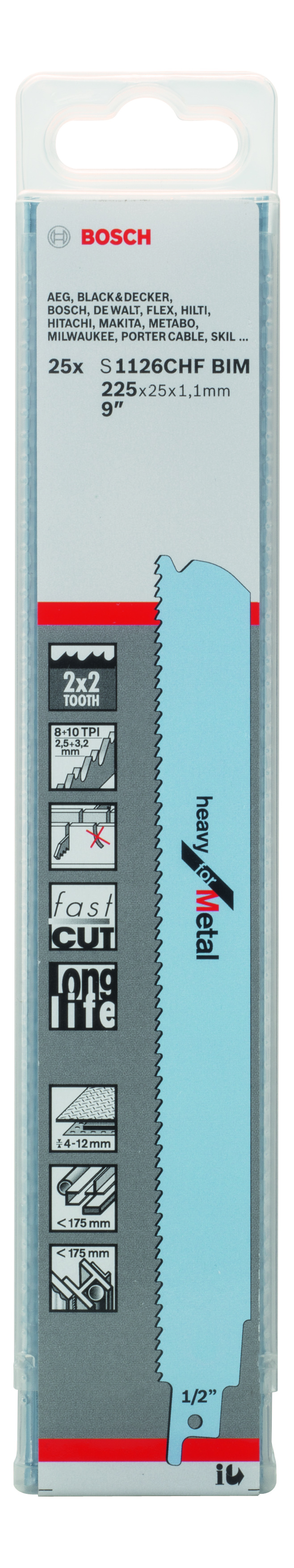 S 1126 CHF BIM, opatentowana geometria zębów: 2x2 Tooth Geometry Grube blachy (4-12 mm), grubościenne, zamknięte i otwarte profile i rury (<175 mm). Szybkie i precyzyjne wiernokątne cięcie.