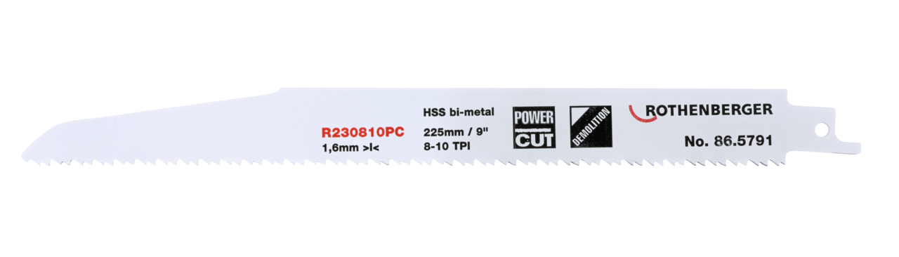 Brzeszczot uniwersalny HSS Bimetal 225x20x1,5 mm do stosowania w połączeniu z piłami elektronicznymi ROTIGER VARIO Electronic i Universal ROTIGER VARIO Electronic do cięcia żeliwnych profili rurowych.