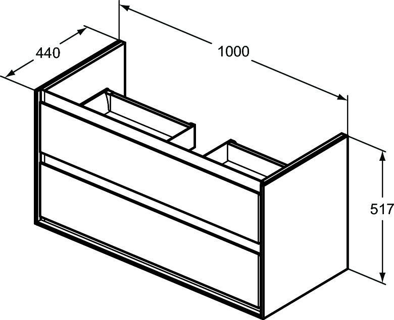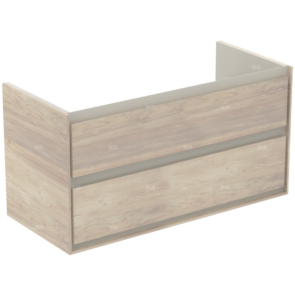Wisząca 100 cm. 2 szuflady ze zintegrowanymi uchwytami. Szuflady z systemem samodomykania. Zestaw montażowy w komplecie. Szafka do skompletowania z: umywalką z powierzchniami bocznymi 104 cm E027401 lub. umywalką nablatową 60 cm E034801/40 cm E034701 z wymaganym blatem E0851. Zalecany: syfon oszczędzający przestrzeń EE23033967 (zamawiany oddzielnie).