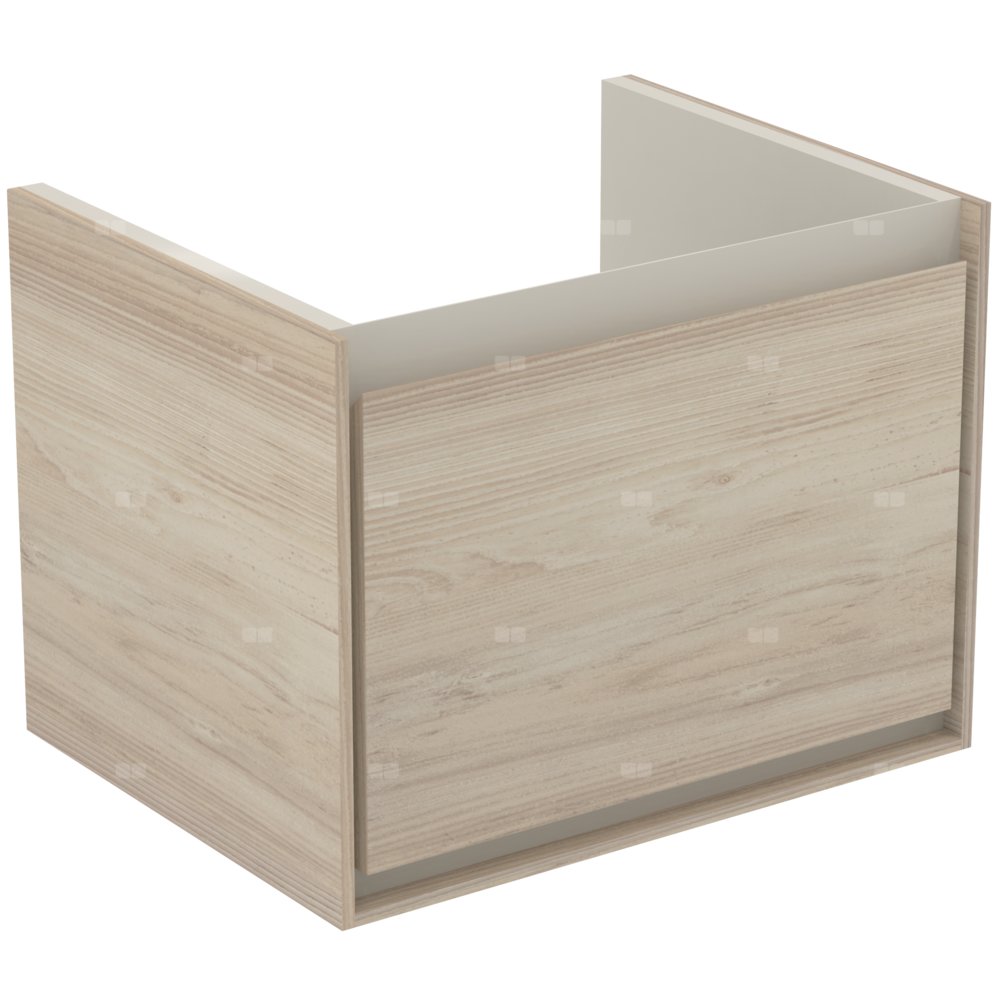 Wisząca. 1 szuflada ze zintegrowanym uchwytem. Szuflady z systemem samodomykania. Zestaw montażowy w komplecie. Szafka do skompletowania z: umywalką Cube 60 cm E074201. Zalecany: syfon oszczędzający przestrzeń EE23033967 (zamawiany oddzielnie).