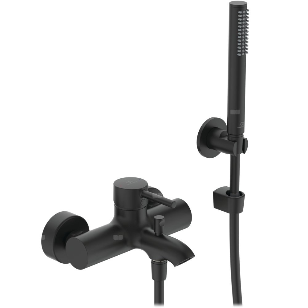 Głowica ceramiczna 38 mm z ogranicznikiem temperatury. Metalowy uchwyt z nadrukowanymi czerwonymi i niebieskimi oznaczeniami. Przełącznik automatyczny. Standardowe przyłącza ścienne. Aerator typu Cache. Zawór zwrotny. Akcesoria: 1 funkcyjna słuchawka natryskowa, metalowe mocowanie ścienne, wąż natryskowy 1750 mm.