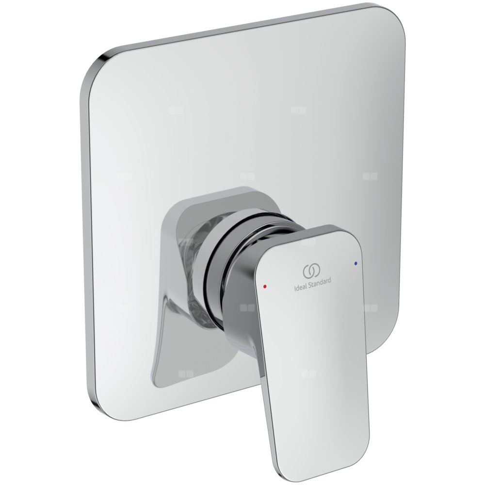 Głowica, 47 mm, z ograniczeniem temperatury wody. Metalowy uchwyt z oznaczeniem wody: ciepła/zimna. Rozeta maskująca z tworzywa, chromowana. W komplecie zestaw montażowy.