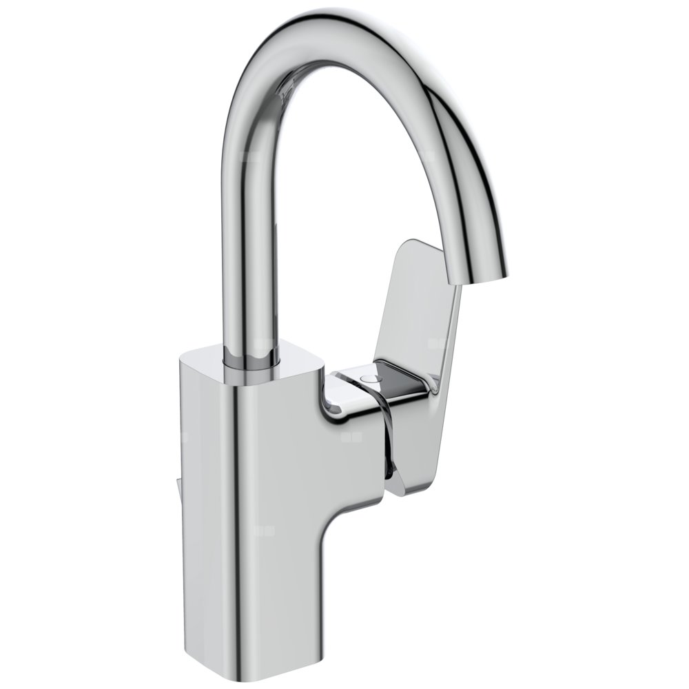 Bateria umywalkowa stojąca. Jednootworowa z obszarem Comfort pod aeratorem: R180 mm, zakres operacyjny: 120°. Innowacyjna ceramiczna głowica FirmaFlow 38 mm z ogranicznikiem temperatury. Metalowy uchwyt z nadrukowanymi czerwonymi i niebieskimi oznaczeniami. Smukły aerator z ogranicznikiem przepływu wody do 5 l/min. System montażu Easy-Fix. Wężyki przyłączeniowe G3/8”. Metalowy korek automatyczny.