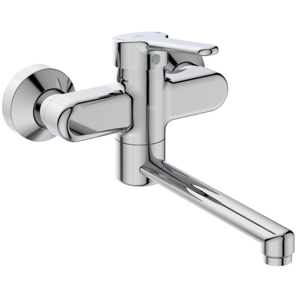 Odlewany korpus z wylewką zapewniającą samoczynny odpływ wody. Ruchoma wylewka dł 200 mm. Metalowy uchwyt dł. 100 mm. z nadrukowanymi czerwonymi i niebieskimi oznaczeniami. Bez metalowego korka automatycznegoWandaloodporny aerator ograniczający napowietrzenie strumienia wody. Ogranicznik przepływu w głowicy do 8,4 l/min. Wężyki przyłączeniowe PEX G3/8". Głowica ceramiczna 38 mm z ogranicznikiem temperatury. System montażu EASY-FIX. Klasa akustyczna 1. Zgodna z EN817. Wszystkie materiały w baterii które mają kontakt z wodą pitną są zgodne z wymaganiami KTW, ACS i WRAS.