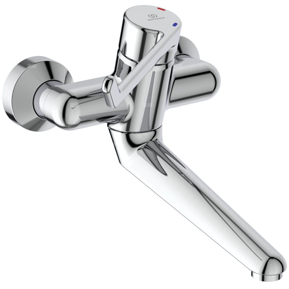 Długość wylewki 200 mm, długość uchwytu 180 mm. Ukryte wyciszone przyłącza mimośrodowe bez funkcji odcięcia przepływu wody. Metalowy uchwyt z nadrukowanymi czerwonymi i niebieskimi oznaczeniami. Aerator PCA Laminarny M24x1 wandaloodporny. Głowica ceramiczna typu Cycle Valve z ogranicznikiem temperatury wody. Uszczelnione rozety, ze standardowymi złączami S i reduktorem hałasu.