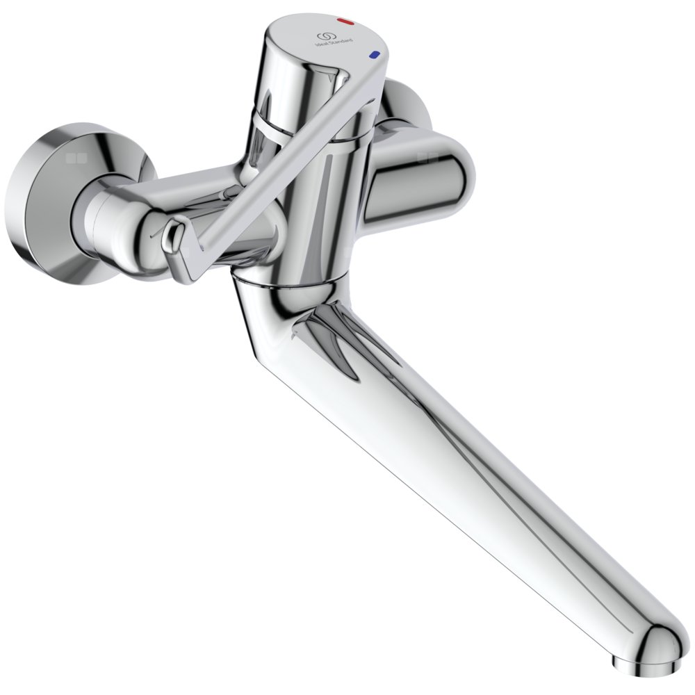 Długość wylewki 250 mm, długość uchwytu 230 mm. Ukryte wyciszone przyłącza mimośrodowe bez funkcji odcięcia przepływu wody. Metalowy uchwyt z nadrukowanymi czerwonymi i niebieskimi oznaczeniami. Aerator PCA Laminarny M24x1 wandaloodporny. Głowica ceramiczna typu Cycle Valve z ogranicznikiem temperatury wody. Uszczelnione rozety, ze standardowymi złączami S i reduktorem hałasu.