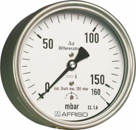 Ciśnieniomierz różnicowy AFRISO KP Dif D411 0/25 mbar mosiądz G1/2B aksjalne fi 160, kl. 1.6%