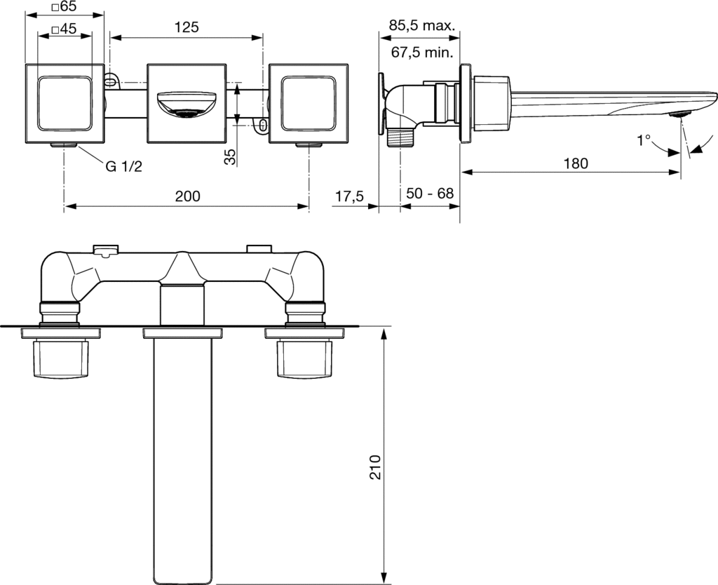 Bateria umywalkowa podtynkowa Conca Dual Control, kolor Srebrna Satyna.