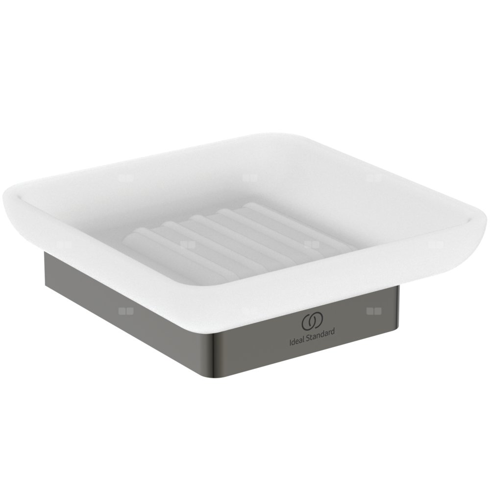 Mydelniczka Conca wisząca kwadratowa. Szkło matowe. Zestaw montażowy w komplecie. Dostępne wykończenia: - technologia galwanizacji (AA), - technologia PVD (GN, A2, A5).