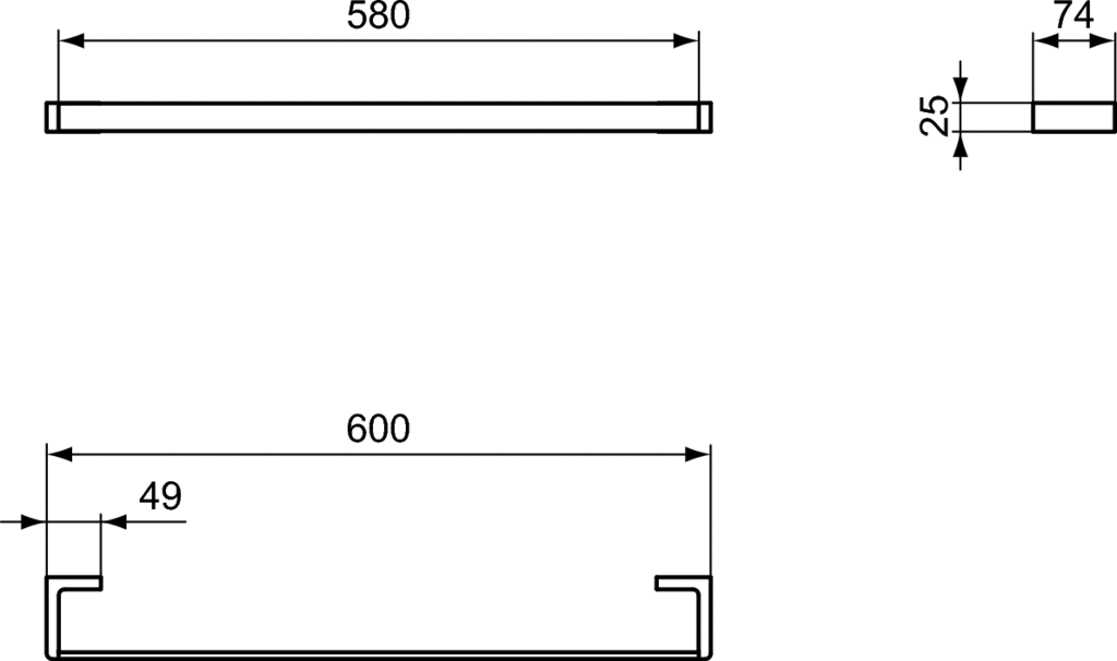 Poręcz na ręcznik pojedyncza 60 cm, Squared. Zestaw montażowy w komplecie. Dostępne wykończenia: - technologia galwanizacji (AA), - technologia PVD (GN, A2, A5).