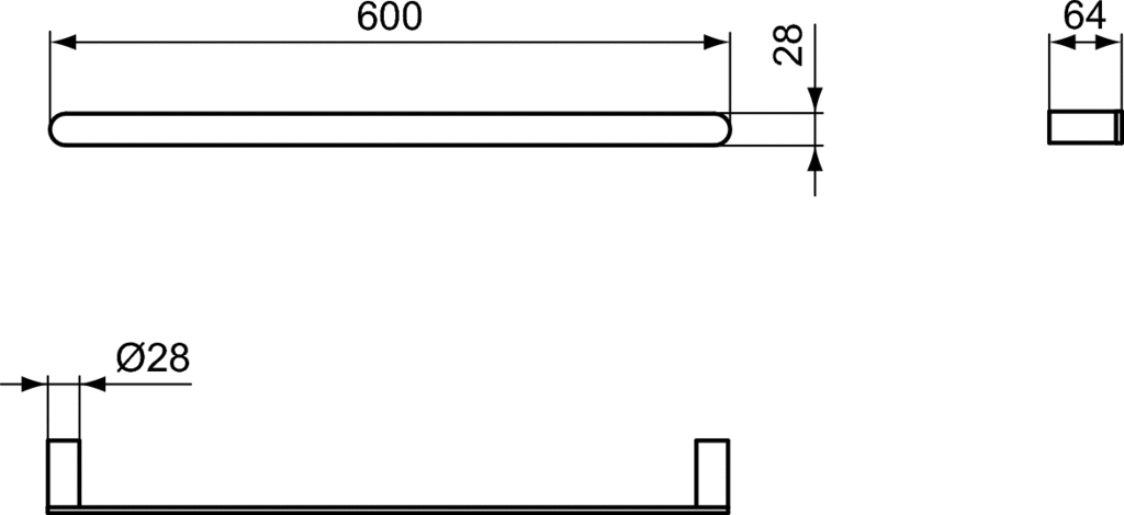 Poręcz na ręcznik pojedyncza 60 cm, Round. Zestaw montażowy w komplecie. Dostępne wykończenia: - technologia galwanizacji (AA), - technologia PVD (GN, A2, A5).