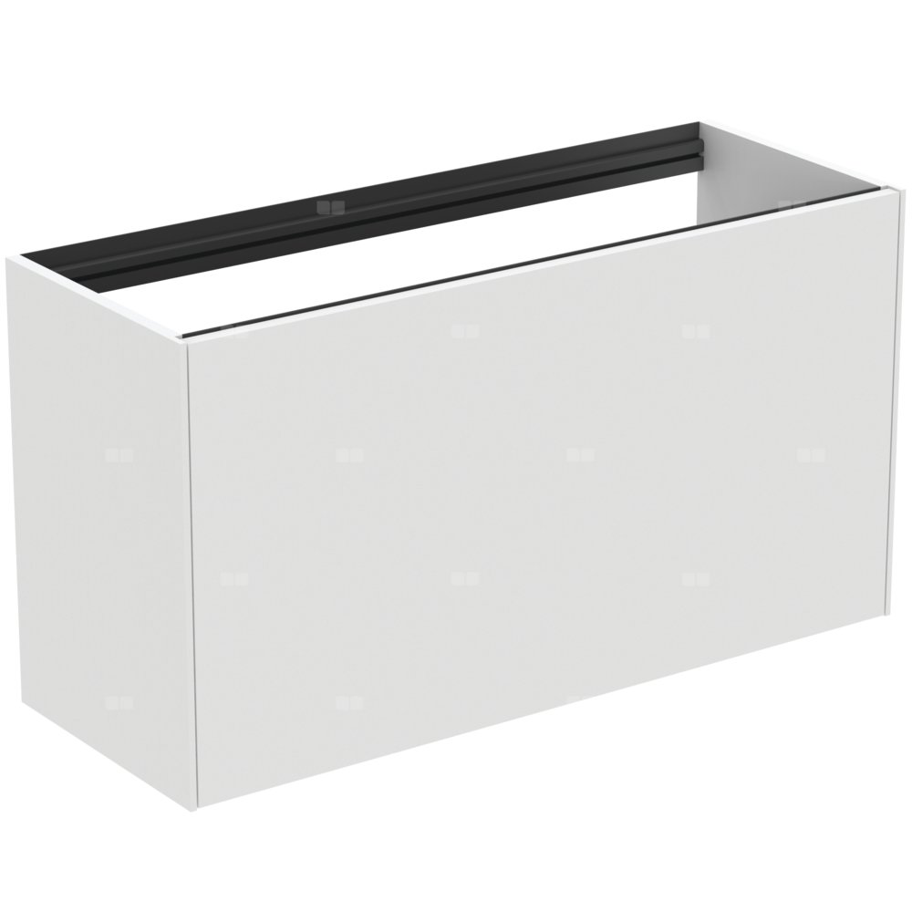 Szafka pod umywalkę z 1 zewnętrzną i 1 wewnętrzną szufladą do kompletowania z blatem ceramicznym 100 cm T4346. Blat ceramiczny (bez otworu/z otworem na zamówienie) zamawiany oddzielnie pod wymiar wybranej umywalki. Szuflady z funkcjami push to open i samodomykania "soft close". Wykończenie wewnętrzne szafek w kolorze antracytowym, pasujące do koloru szuflad.